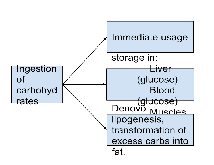 Although both macronutrients are used in significant amounts throughout the day, the process by which they are being treated varies vastly. This difference stems from the way they are stored. On the one hand, our body can store practically unlimited amounts of fat in the form of adipose tissue (e.g., the fat accumulated around our abdomen, back, and other areas), but on the other hand, we have the ability to store only a minimal amount of carbohydrates. To put things into perspective, the average person may store up to 30,000 kcal worth of fat, which can increase tremendously by becoming overweight or obese but can only store approximately 2,000 kcal of carbohydrates. The limited ability of our body to store carbohydrates ultimately means that whenever ingested, they need to be used immediately, stored in our small carbohydrate reserves (in case there is room), or converted into fat through a process called denovo lipogenesis. Since the second pathway is unlikely and the third one energetically costly, the immediate burn of carbohydrates is what our bodies will resort to when ingesting them.