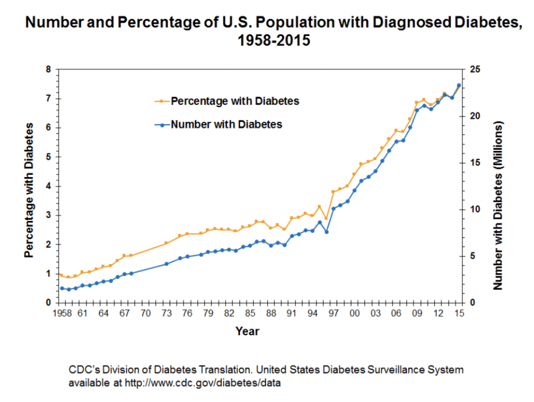Given the above mechanism, it is evident that fat accumulation is the underlying driver of T2D. This is corroborated by every piece of longitudinal data about the disease and its correlation with obesity levels. Specifically, T2D started to become a health concern and subsequently a dire epidemic at the same time that people began gaining weight. Given that obesity is founded on our unhealthy nutrition habits and lack of physical activity, it is an undeniable fact that T2D is exclusively a disease of our modern lifestyle.